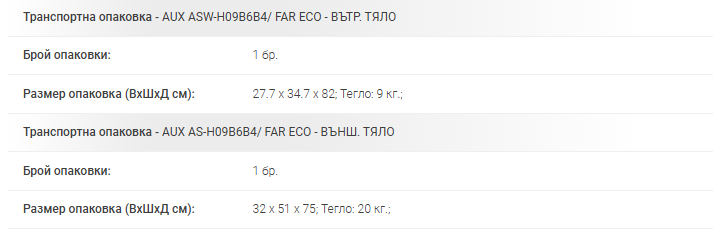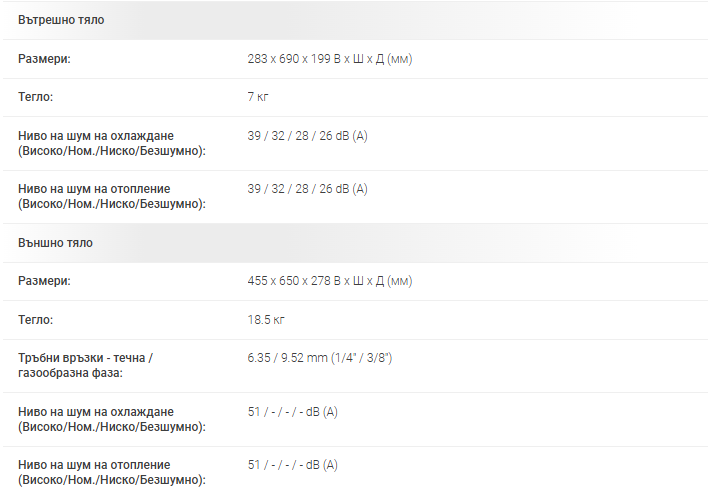 | Годишен разход на електроенергия (Охлаждане / Отопление) | 150 / 735 kWh |