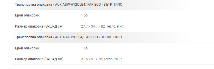 | Годишен разход на електроенергия (Охлаждане / Отопление) | 192 / 840 kWh |